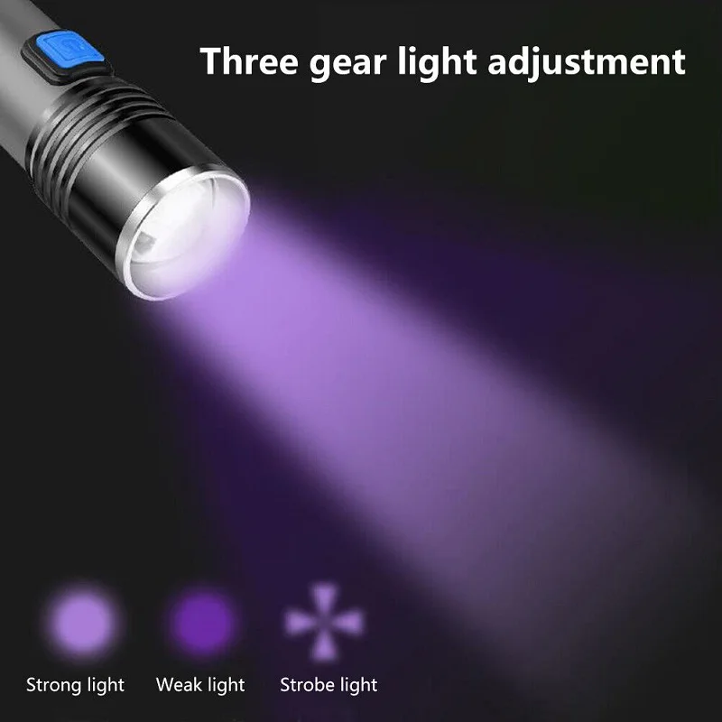 UV Flashlight uses a built-in 1200mAh lithium battery rechargeable design. The USB direct charge design allows you to get rid of the trouble of frequent battery replacement.