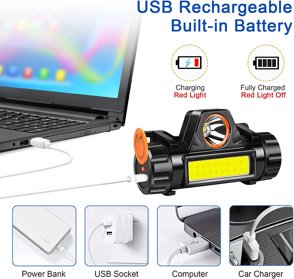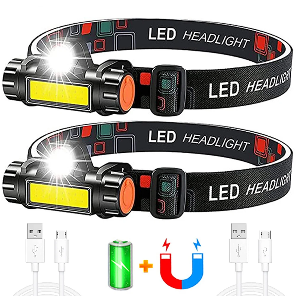 Rechargeable Mini COB Headlamp Portable Powerful Built In 18650 Battery Hiking Outside Light Search Headlight Stepless Dimming