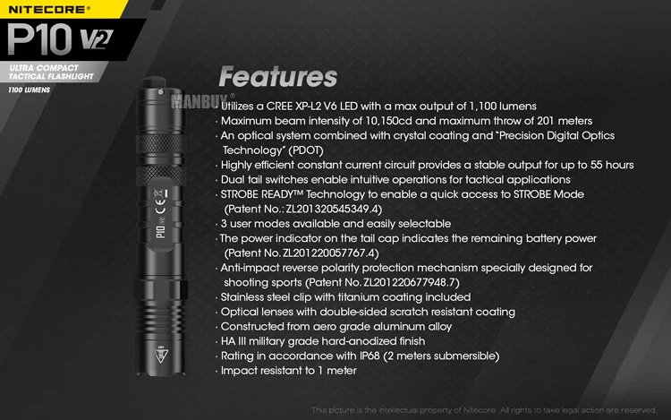 - » 38% brighter than original Nitecore P10 flashlight