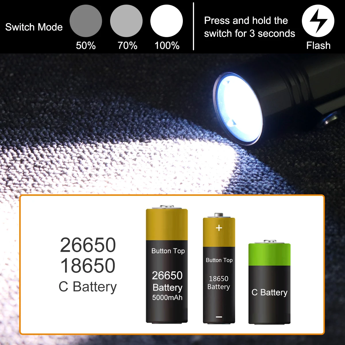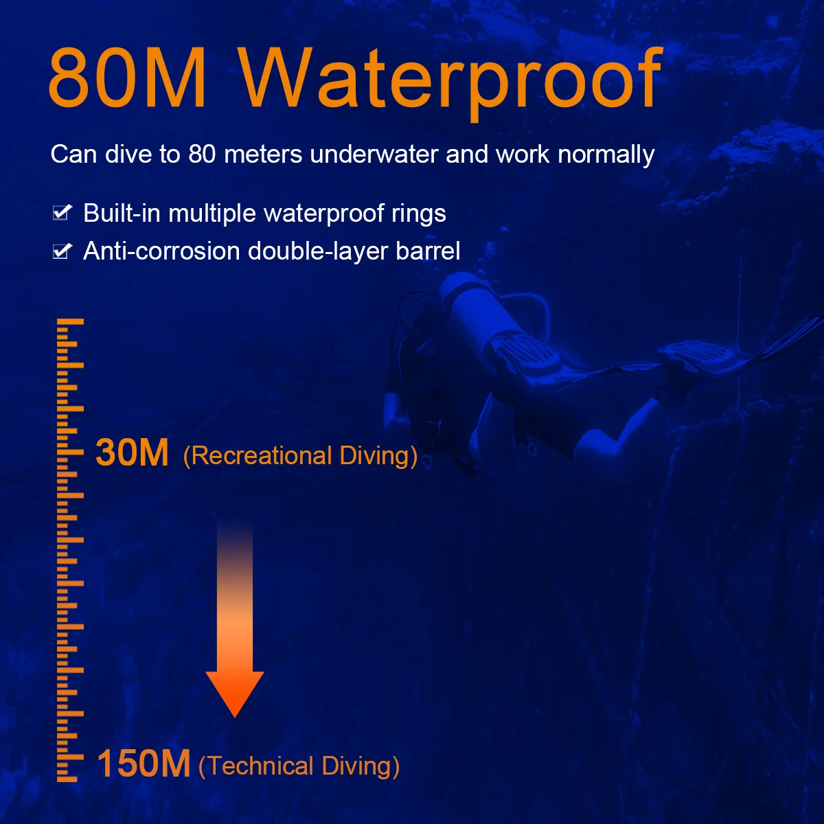 – The flashlight maintains a stable current when you use it, and it is not easy to flicker, giving you a greater sense of security in diving.
