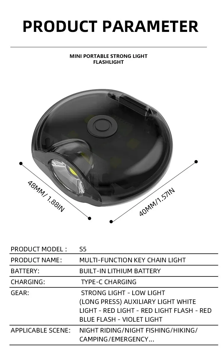 • Versatile Use :With its keychain design, this flashlight can be easily attached to your keys or backpack, making it a versatile tool for various situations.