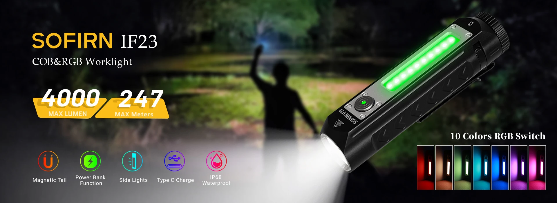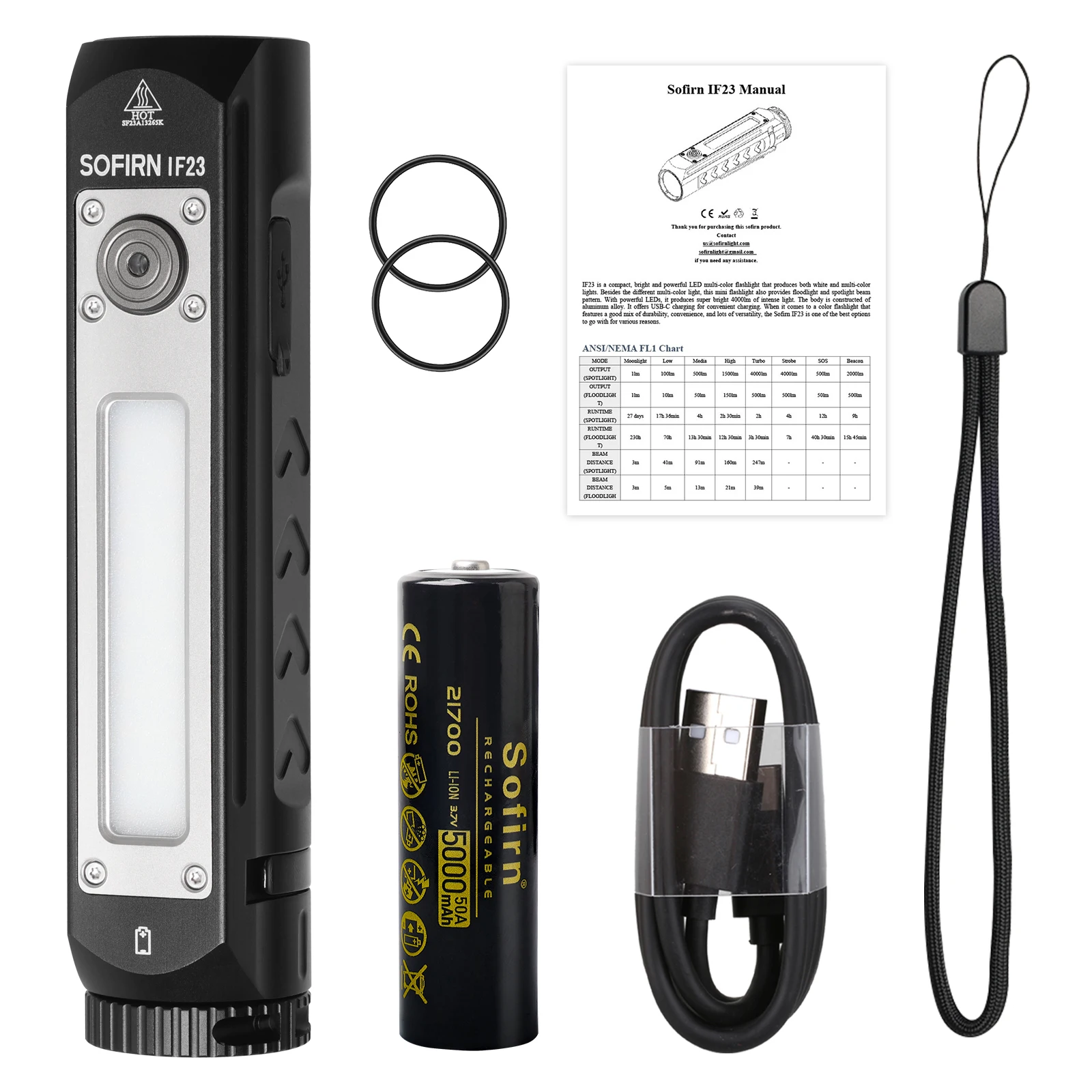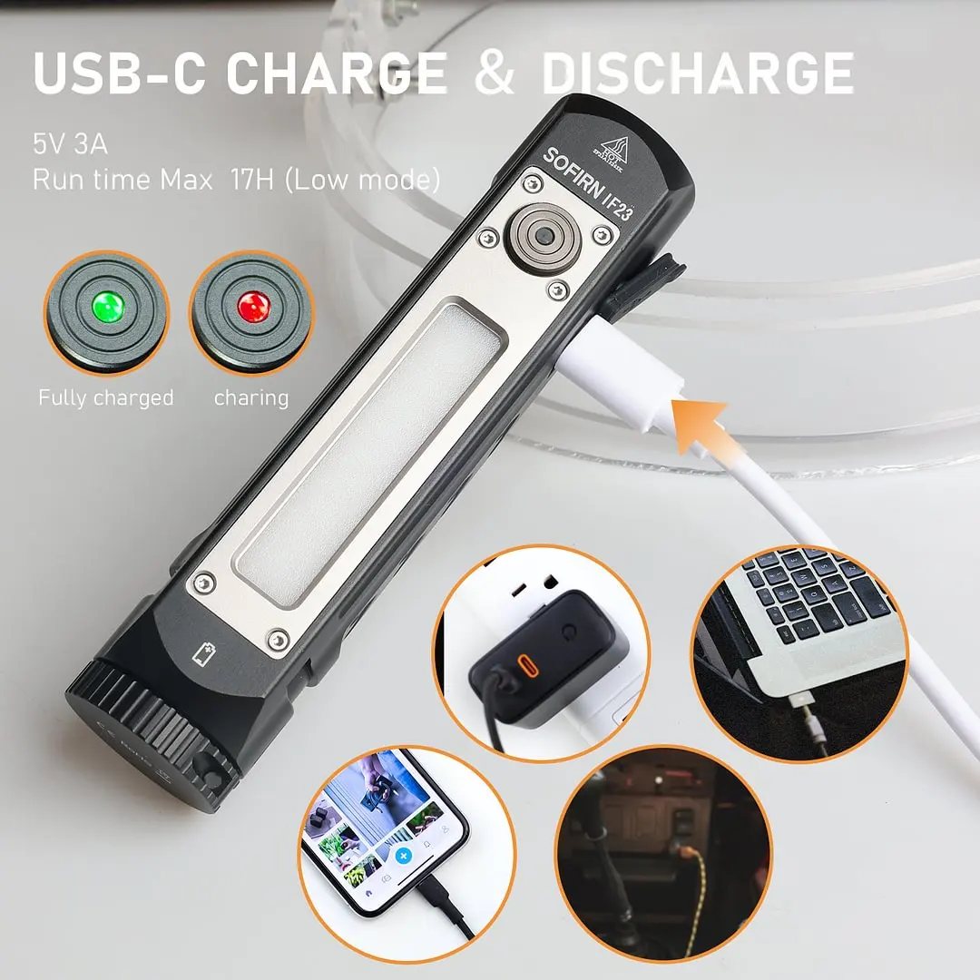 Sofirn IF23 Flashlights 4000lm Spotlight Floodlight Color 3 Types Bright Side Lamp Magnetic Tail Type C 21700 Rechargeable Torch