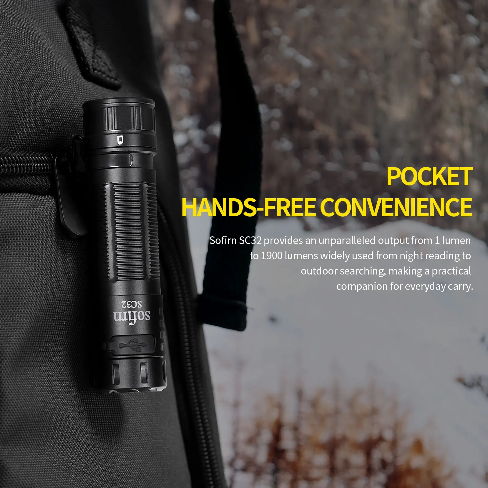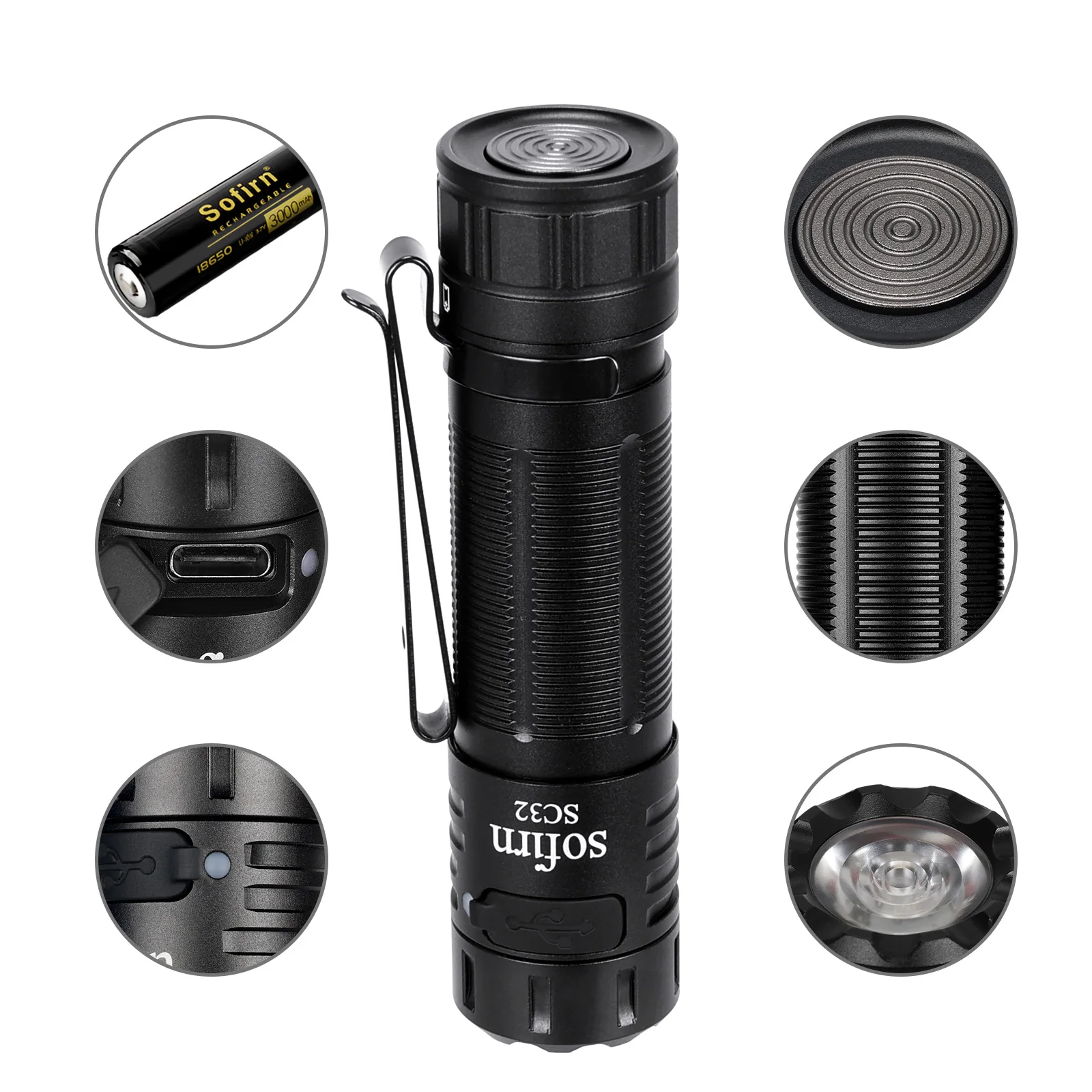 Sofirn SC32 provides an unparalleled output from1 lumen to 2000 lumens widely used from night reading to outdoor searching, making SC32 a practical companion for everyday use. It features a tail switch to prevent it from accidentally turning on. The equipped Type-C rechargeable function makes SC32 much more convenient to charge the 18650 battery inside the tube without taking the battery out.