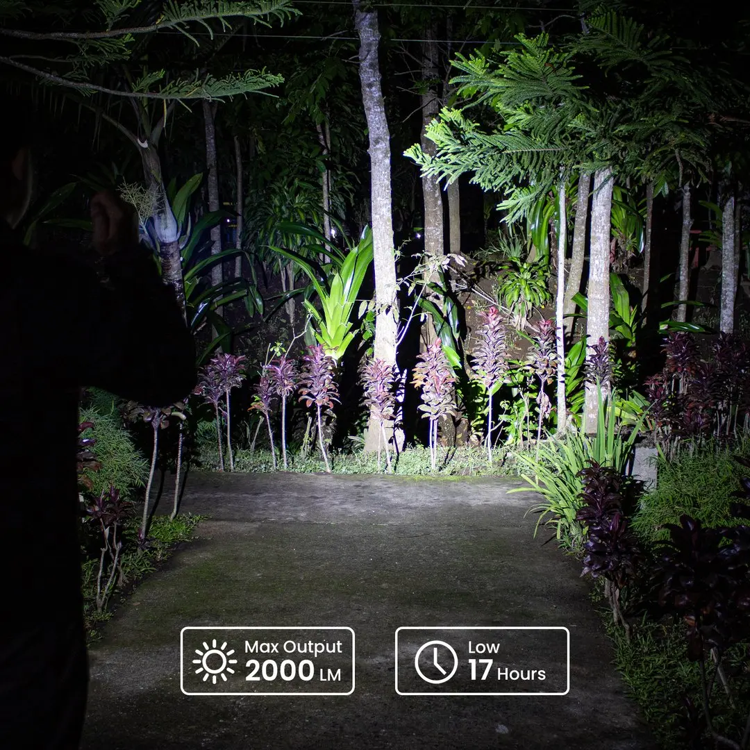 2. Super Bright: This LED flashlight is equipped with the Luminus SST-40, easily lighting up the path in front of you with significantly improved throw: it delivers a maximum output of 2000lm at a distance of up to 214meters.