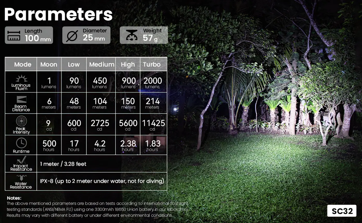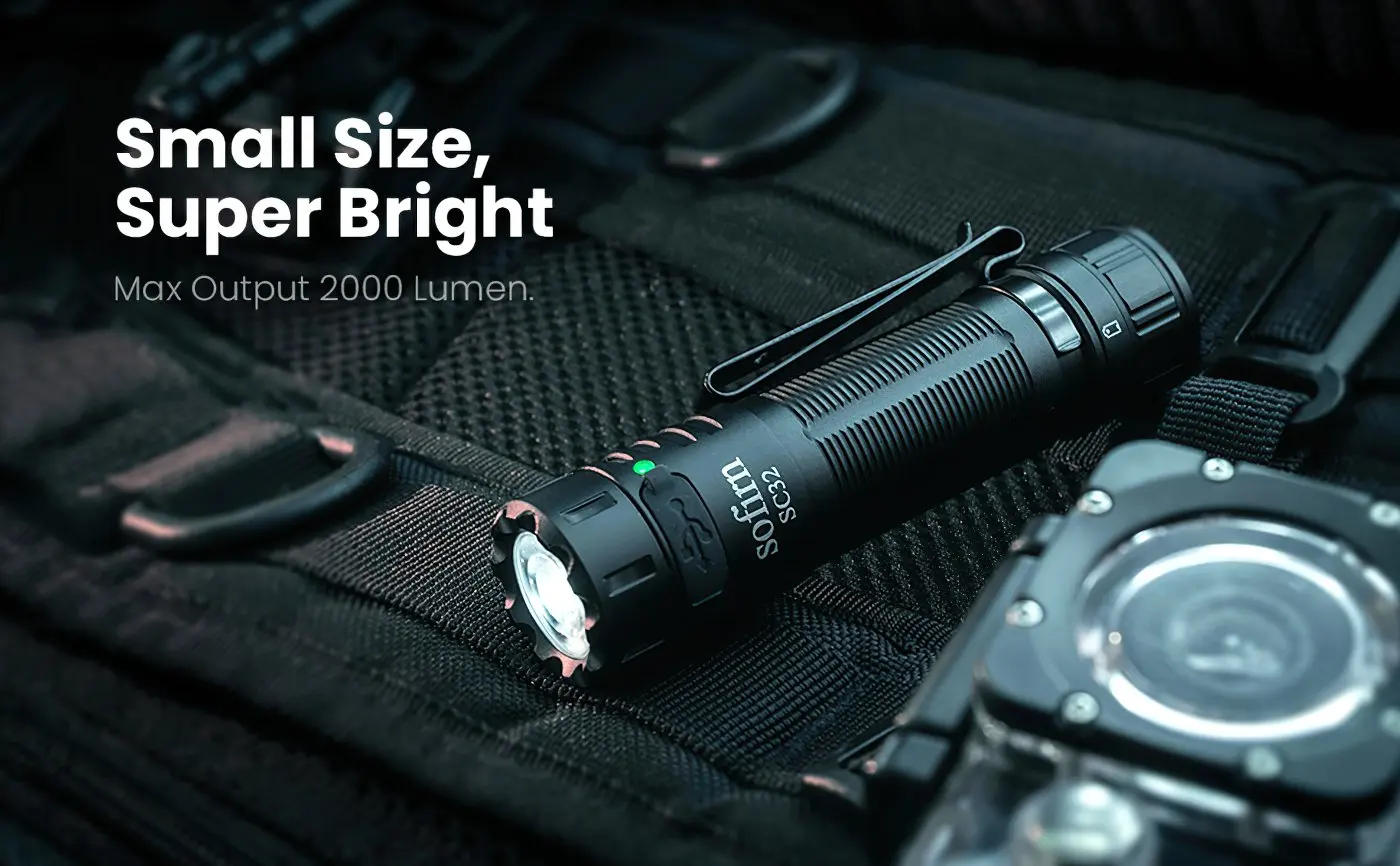 Sofirn SC32 provides an unparalleled output from1 lumen to 2000 lumens widely used from night reading to outdoor searching, making SC32 a practical companion for everyday use. It features a tail switch to prevent it from accidentally turning on. The equipped Type-C rechargeable function makes SC32 much more convenient to charge the 18650 battery inside the tube without taking the battery out.