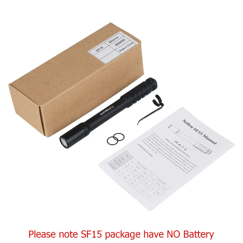 Attention: Sofirn SF15 package NOT Including any battery inside.