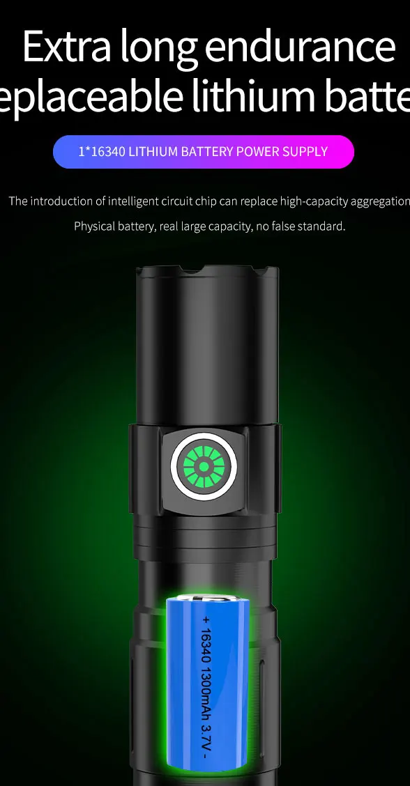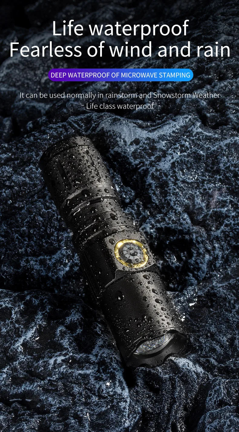 4. About waterproof: the flashlight is waterproof IP64, it can be used normally in rainy days, but don't use it for diving or put it into the water directly.