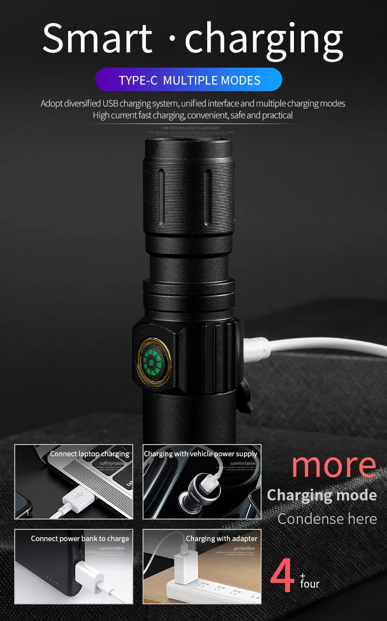 1. When the light becomes very weak, please charge the flashlight in time to avoid excessive discharge of the battery affects the service life.