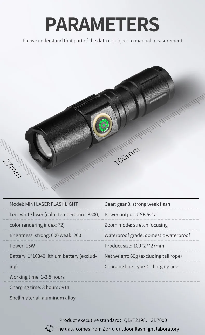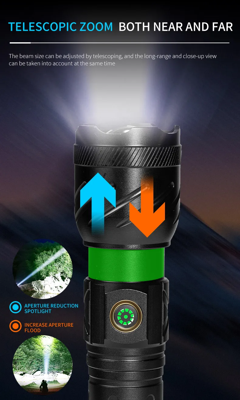 1. About Zoom: Stretch the head, it can be retracted and change the size of the aperture, which can be adapted to long-distance or close-range lighting.