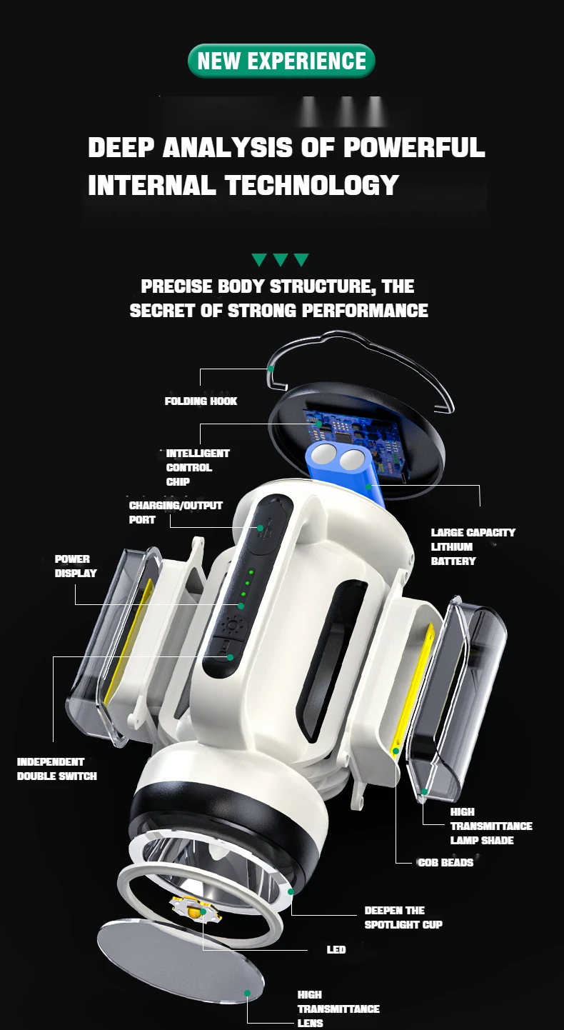 【Rechargeable portable lantern flashlight】:Model :CH-22023 Packing Battery :18650*2=3600 mah