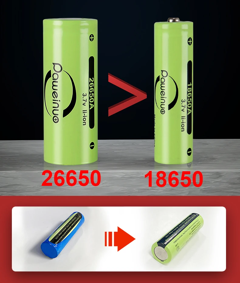 • Lighting time: 18650 battery 4-8 hours ; 26650 battery : 8-15 hours