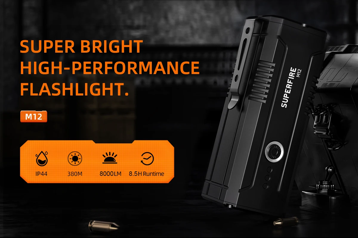 SUPERFIRE M12 High Lumen Rechargeable Power Bank Flashlight