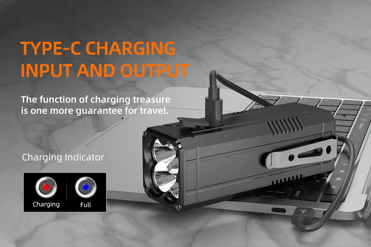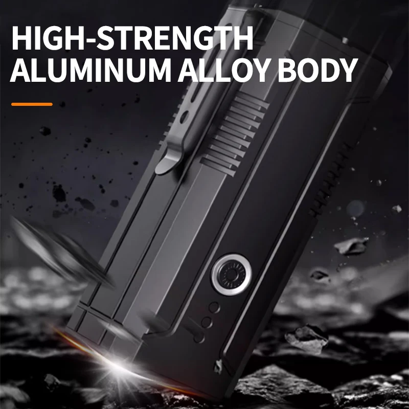 M12 high lumen flashlight is a high-intensity flashlight that is built for emergency use. It has a maximum output of 8000 lumens and runs on over 8000mAh large capacity batteries. The flashlight is also high-strength waterproof, meaning that it is not afraid of wind and rain. This flashlight is perfect for outdoor activities such as camping and hiking, as well as emergencies.