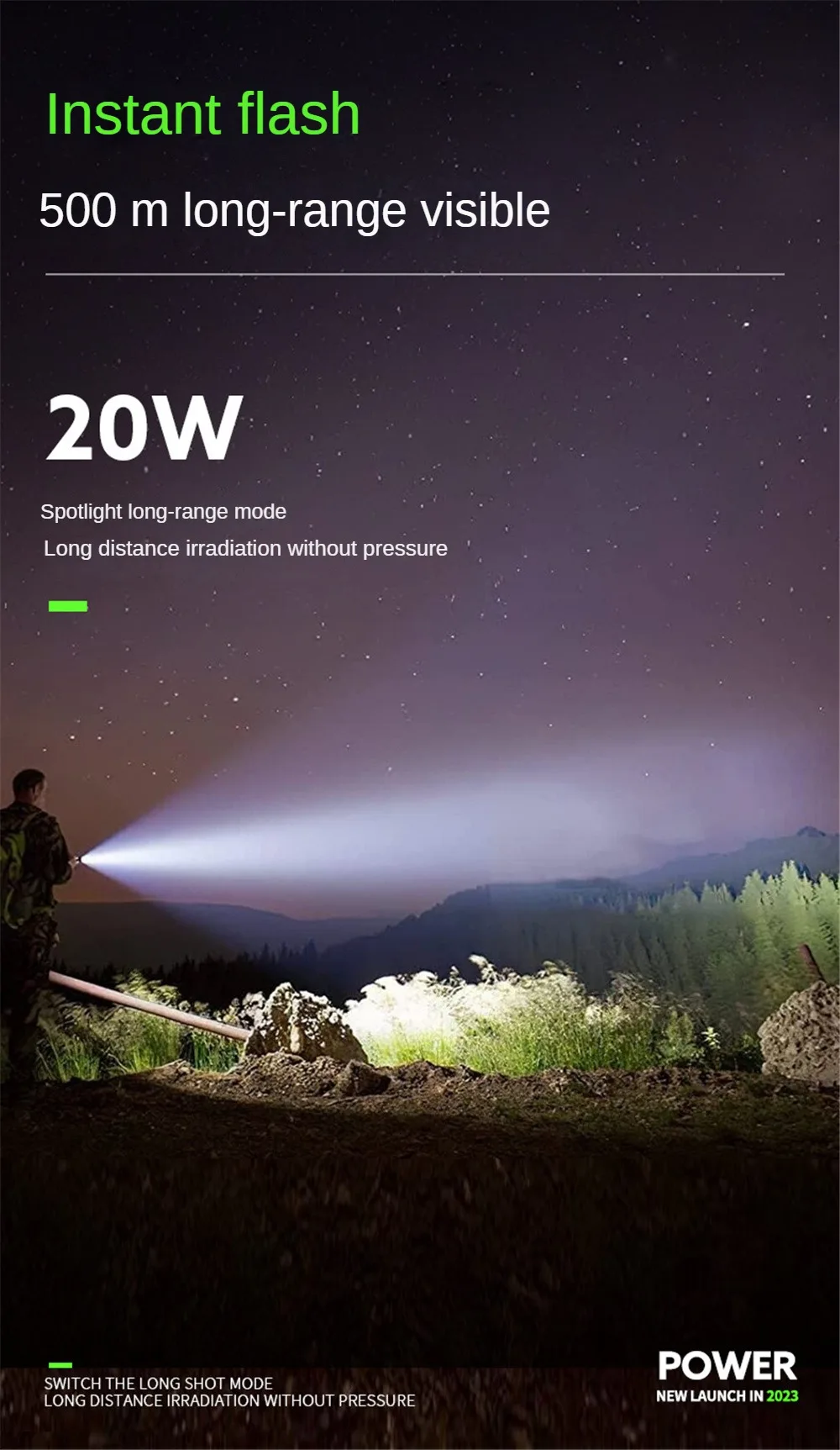 6. Use A Large-capacity Power Battery With Super Large Capacity To Provide Surging Power The Flashlight. It Is Safe, Reliable And Has A Long Life.