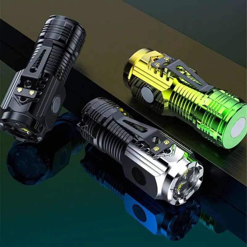Three-eyed Monster Flashlight Camping Equipment The New Abs Chargeable Clip Flashlight Powerful Night Hike Multifunction