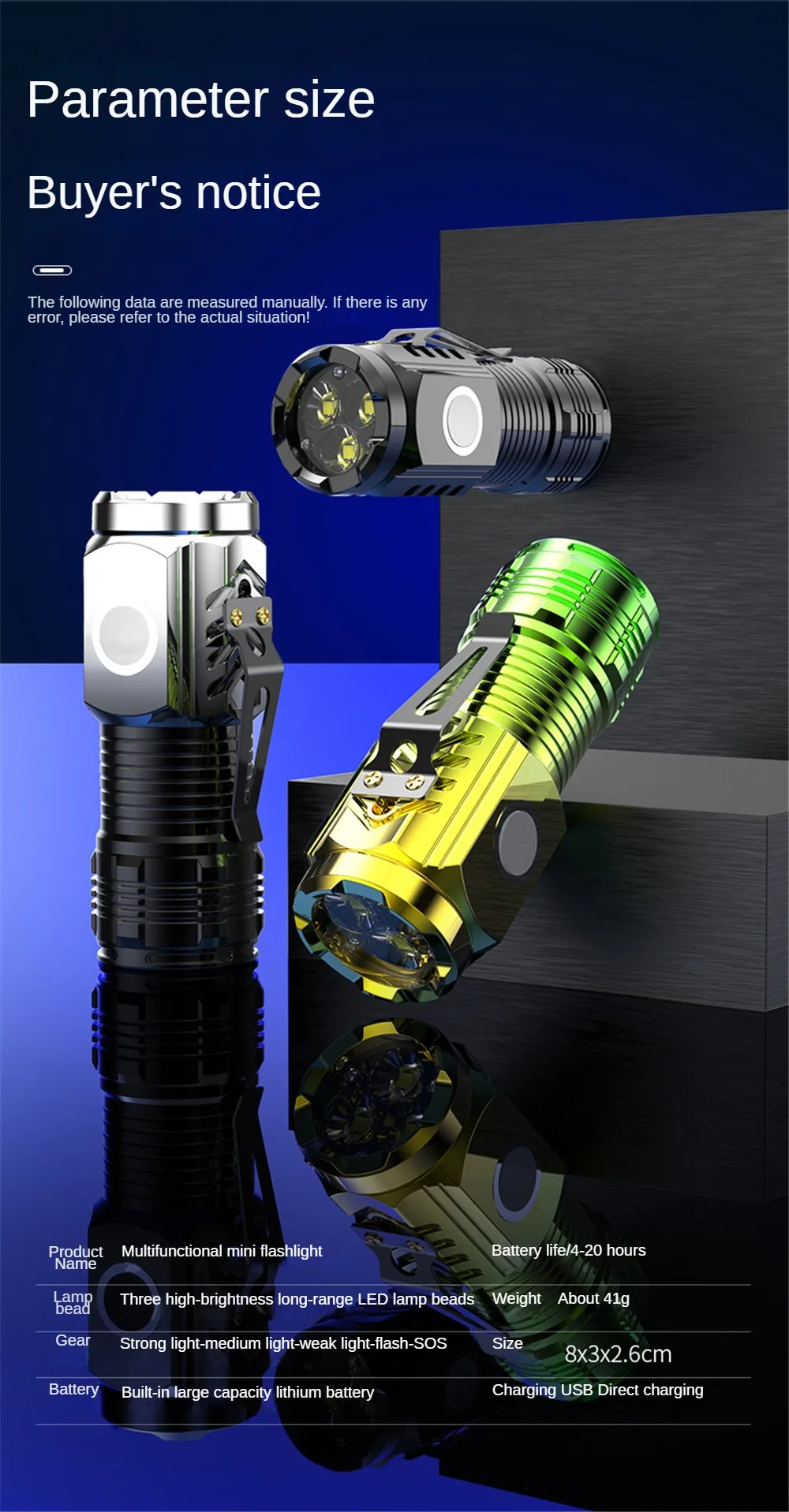 5. Three Upgraded High-brightness Lamp Beads, With A Triangular Structure, Greatly Improve The Brightness Of The Flashlight, Focus The Light More Concentratedly, And Provide Stronger Long-range Performance.