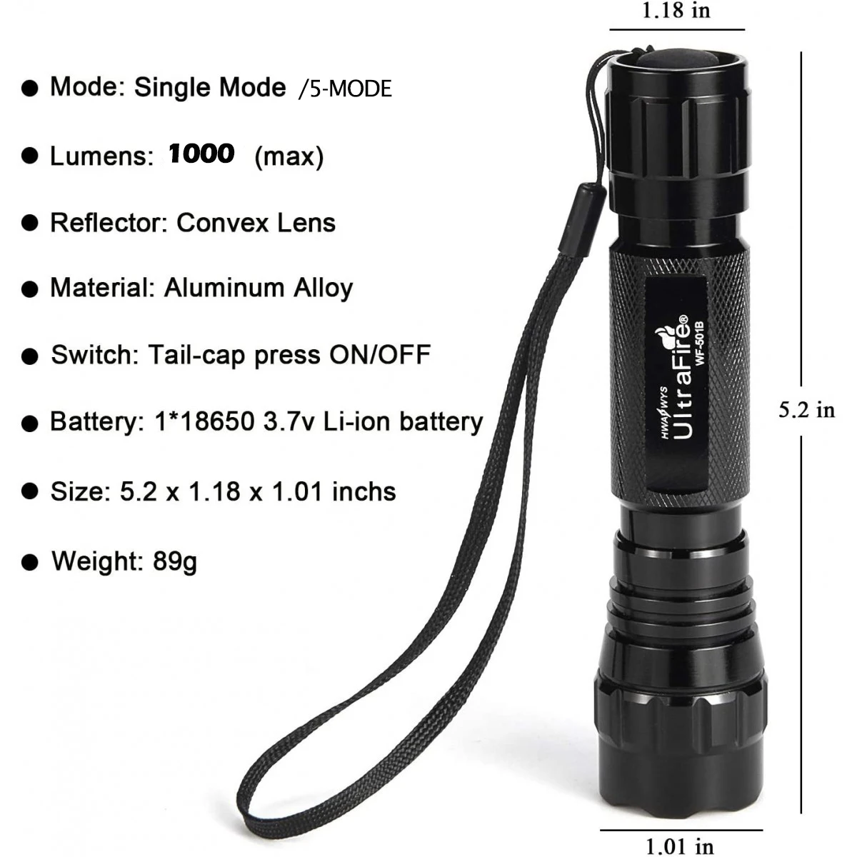 UltraFire 501B LED Tactical Flashlight Edc Work Light Rechargeable Lamp Lantern Torch High Power Flashlights Portable Tiki