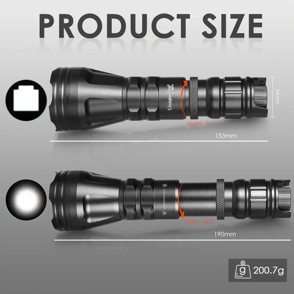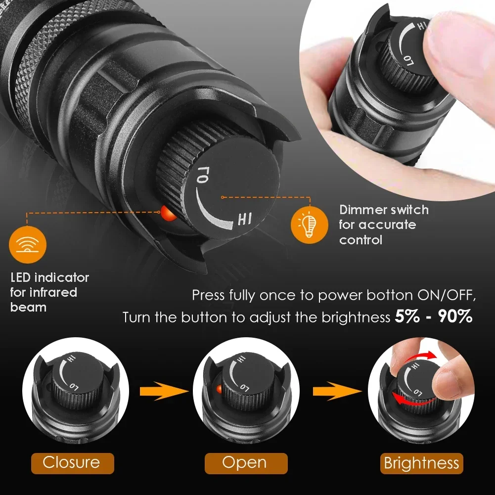 lThe UF2001D is the newest upgraded version of the T20 infrared hunting flashlight. It can be more easily change the color from red light, green light, white light, infrared light, and the latest infrared Vcsel LED module. It meets the different needs of hunting lighting, you can easily replace the modules you need (Additional LED Pills Purchased Separately) . Compatible with all digital & tubed night vision devices including PARD NV007, NV008 ATN PULSAR etc.