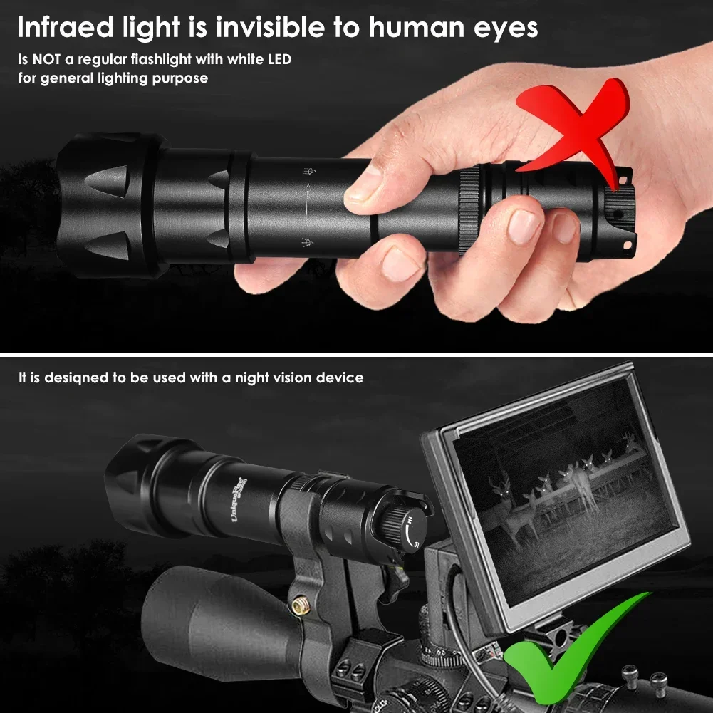 UniqueFire 2002D Vcsel LED IR 940NM 850NM Flashlight Zoom Hunting Fishing Night Vision Torch Rechargeable USB-C 18650 Battery