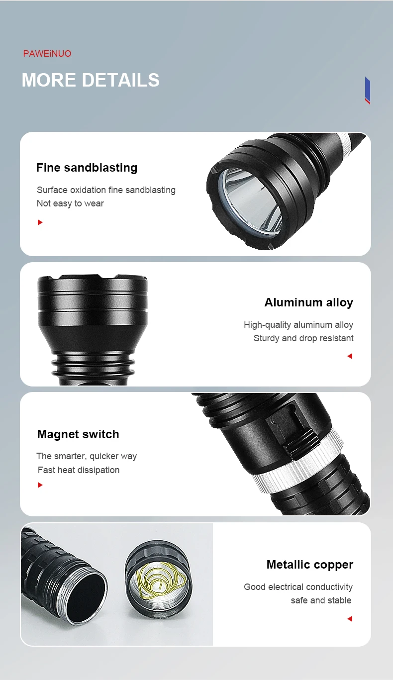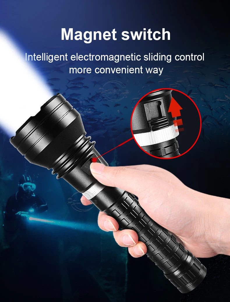 4. The switch is designed using the principle of magnetic induction, which perfectly solves the problem of water entering the buttons of the old diving flashlight.