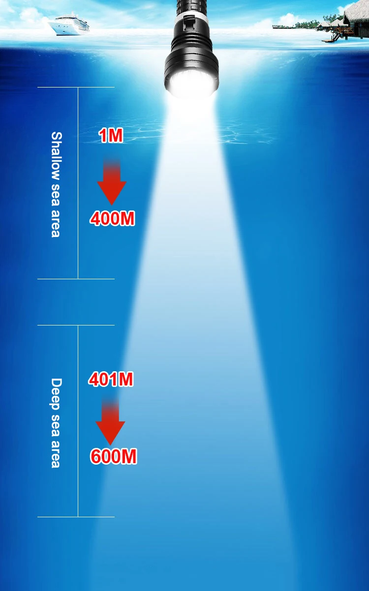 4. Waterproof grade IPX8 professional LED diving flashlight, you can enjoy the underwater time with confidence.