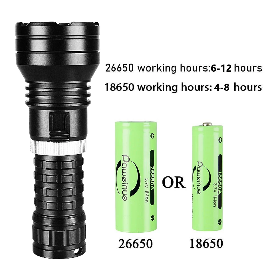 2. Using 2*18650 or 2*26650 rechargeable batteries, the battery life can be up to 10 hours.