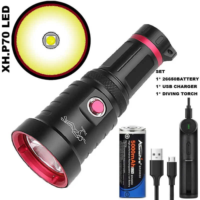 XHP90 diving flashlight professional IP68 waterproof LED flashlight underwater high-power strong light waterproof fill light
