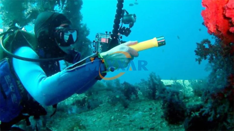 -Professional flashlight for diving, diving depth reach 50 to 60 meters.