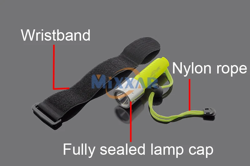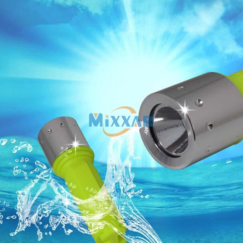 LED Flashlight | Material: Aluminum Alloy Power Source: one 18650 Li-ion battery Irradiation distance on land :50-100m Irradiation distance Underwater: 25-50m The maximum depth of driving: 50-60m Water-resistant (IP68): 8 grade Shock-proof: approx 1.5M |